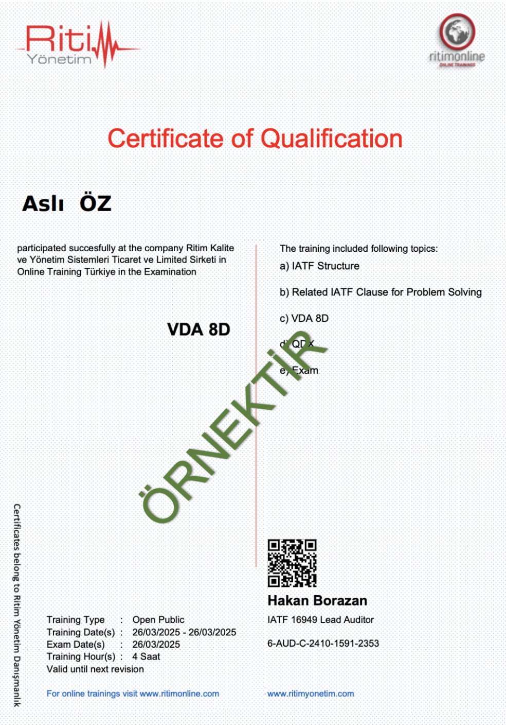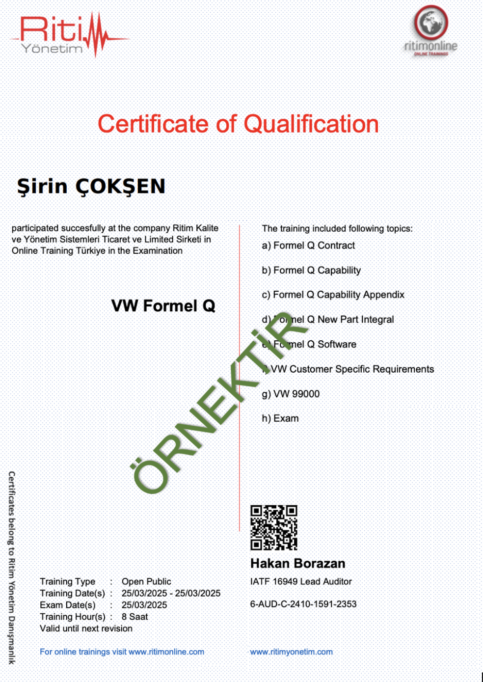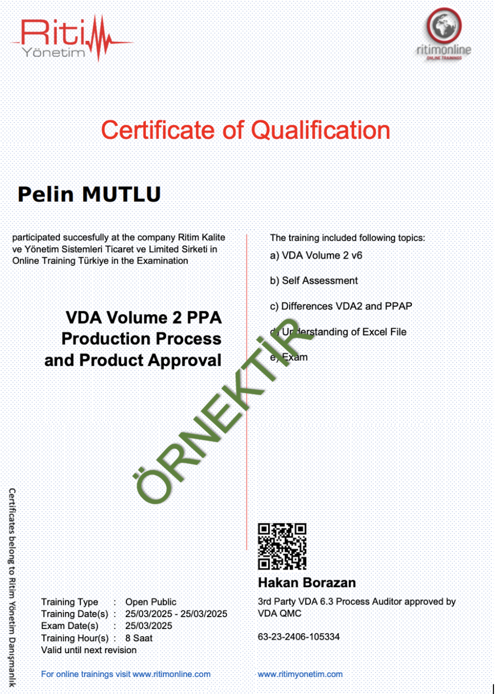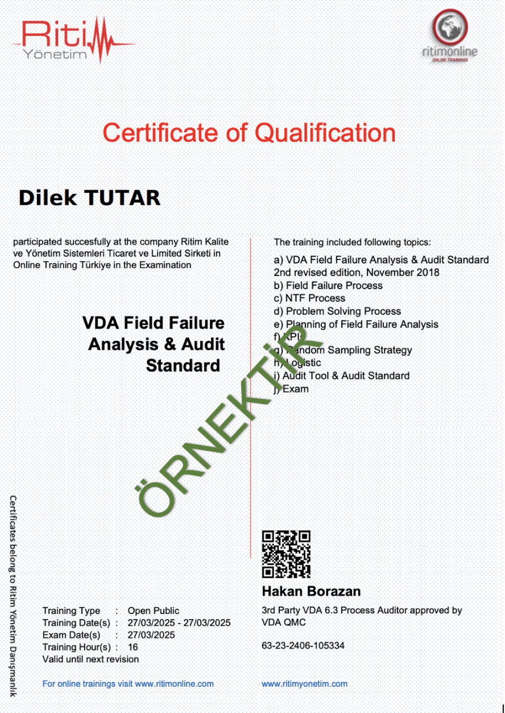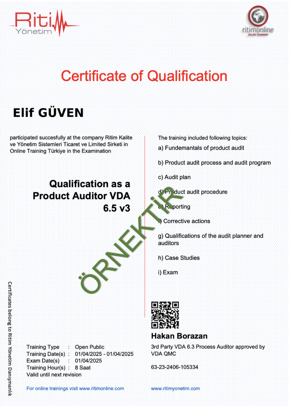 VDA 6.5:2020 Ürün Denetimi Eğitimi