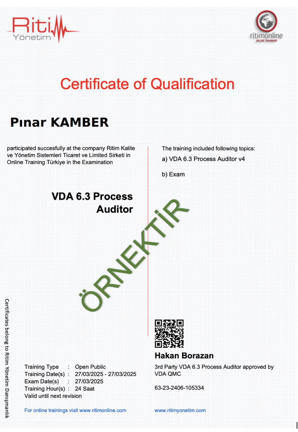 VDA 6.3 v.4 Proses Denetimi Eğitimi