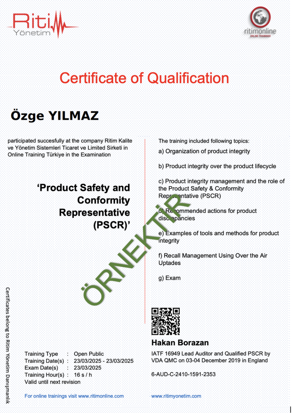 VDA PI PSCR (Ürün Güvenlik ve Uygunluk Temsilcisi)